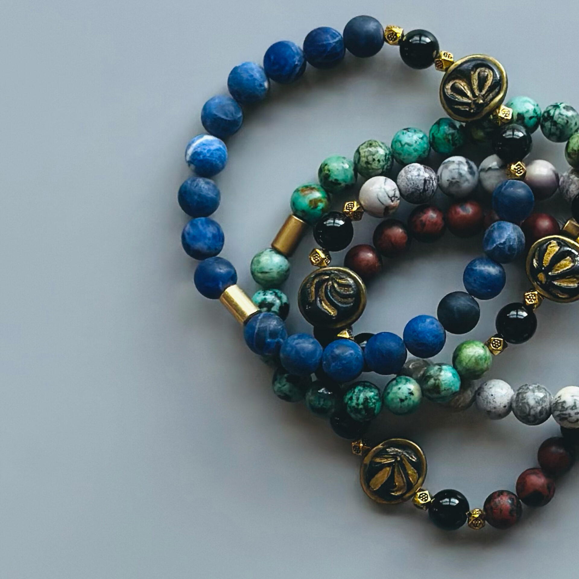 Every bead is hand-selected and strung with care, creating a bracelet that’s as durable as it is meaningful. The natural textures keep you rooted in the earth, while the colors and gemstones connect you to the forces that have shaped the world since time began.