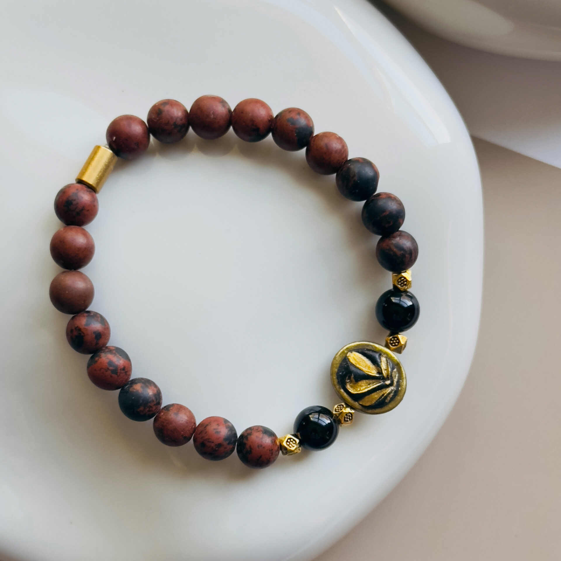 🔥 Fire – Mahogany Obsidian – With its rich red-brown swirls, this volcanic glass fuels your inner drive, builds resilience, and stokes determination in the face of challenges.