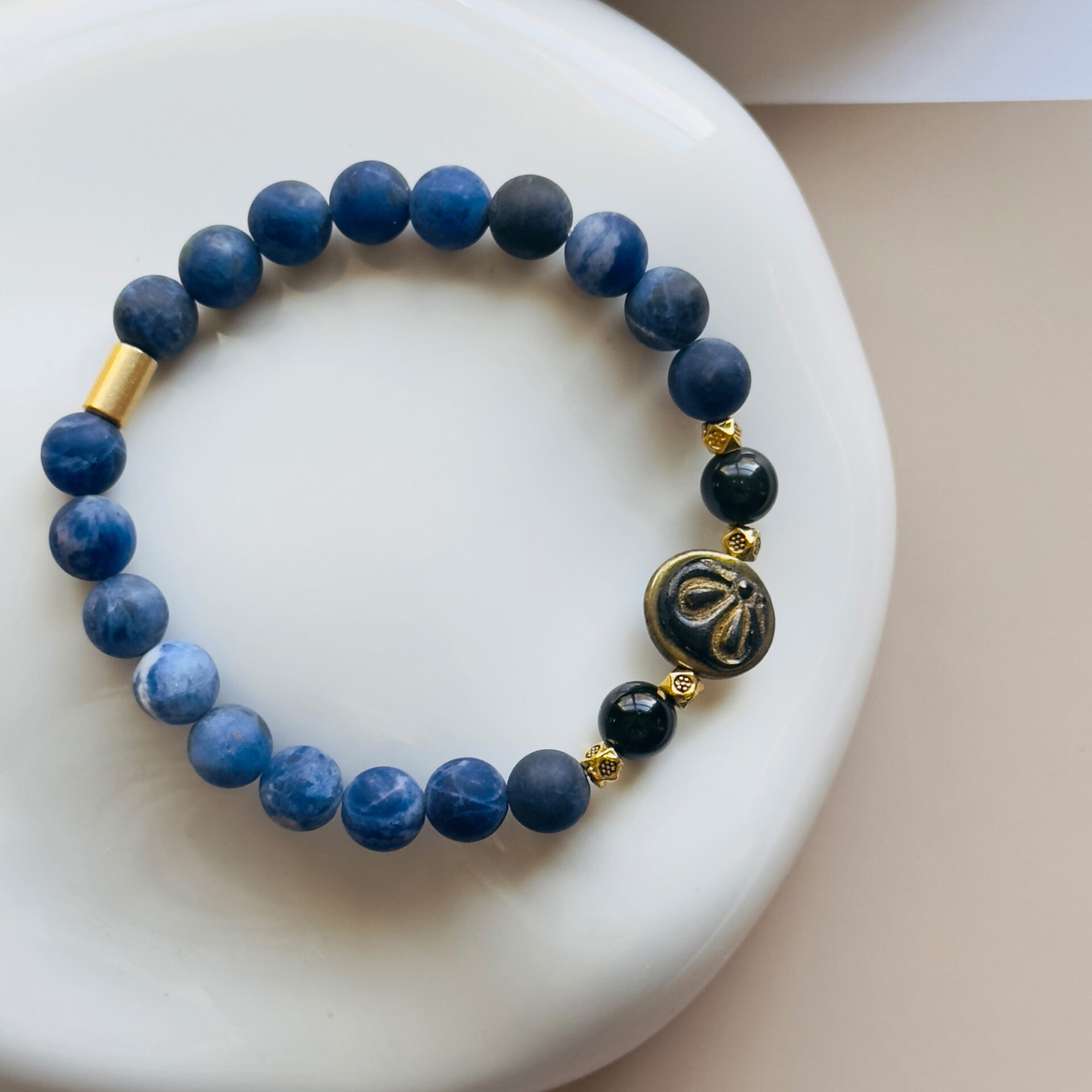 💧 Water – Sodalite – The deep blue stone of clarity and truth, Sodalite encourages intuition, emotional balance, and fluid communication, guiding you to navigate life’s tides with ease.